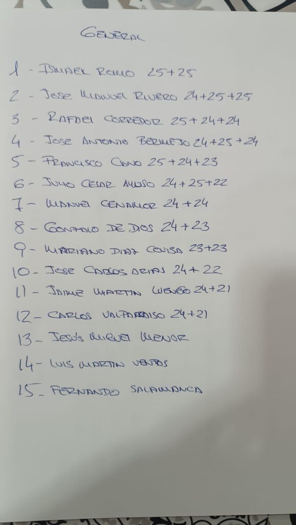 Completaron los puestos de honor José Manuel Rivero, con una marca de 24+25+25, y Rafael Corredor, cerrando un podio de altísimo nivel en una clasificación general muy disputada.